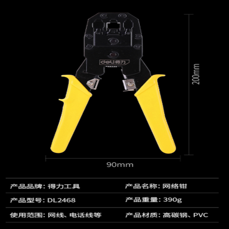 得力(deli) 4P/6P/8P三用網(wǎng)絡(luò)鉗水晶段子壓接鉗壓線鉗網(wǎng)線鉗剝線鉗 DL2468