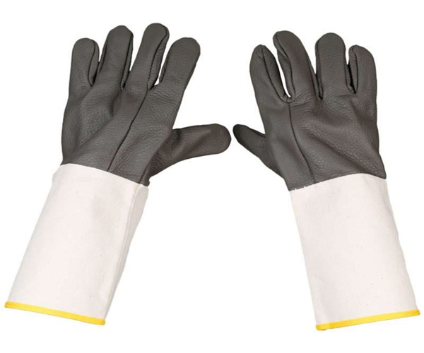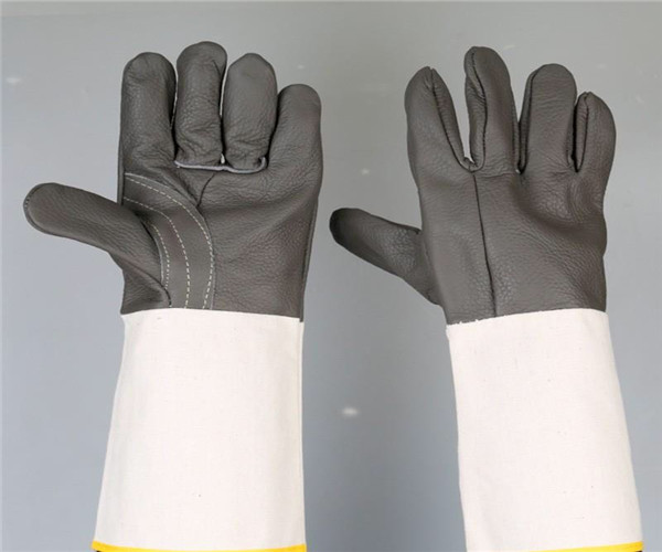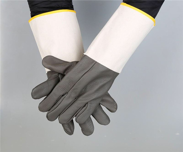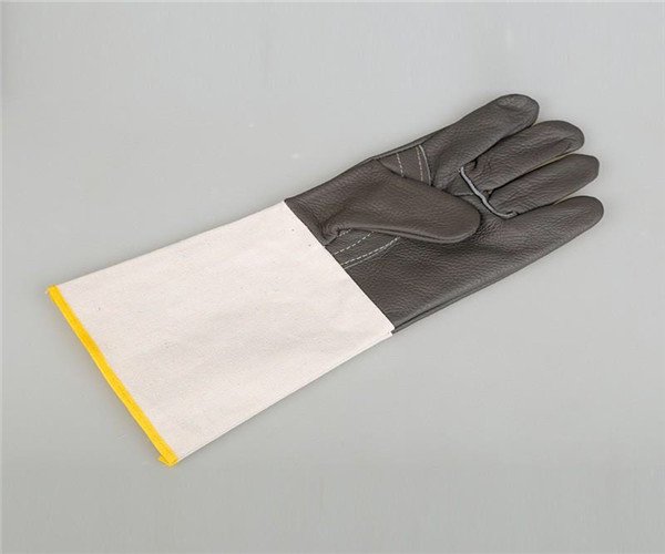 牛盾帆布袖頭層牛皮長電焊帆布手套產(chǎn)品展示圖