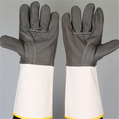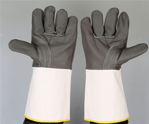 牛盾帆布袖頭層牛皮長電焊帆布手套防火線縫制,幫助提升手套的耐用性,使它更加結(jié)實(shí),不易破損