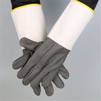 牛盾帆布袖頭層牛皮長電焊帆布手套采用牛一層,耐磨透氣性好,耐熱防火,保護(hù)手部