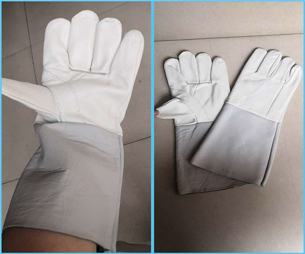 牛盾頭層牛皮全皮長電焊手套淺色產(chǎn)品展示