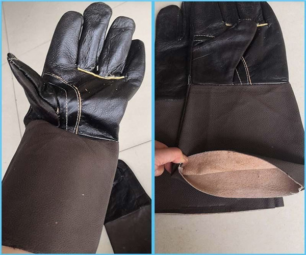 牛盾頭層牛皮全皮長電焊手套深色產(chǎn)品展示