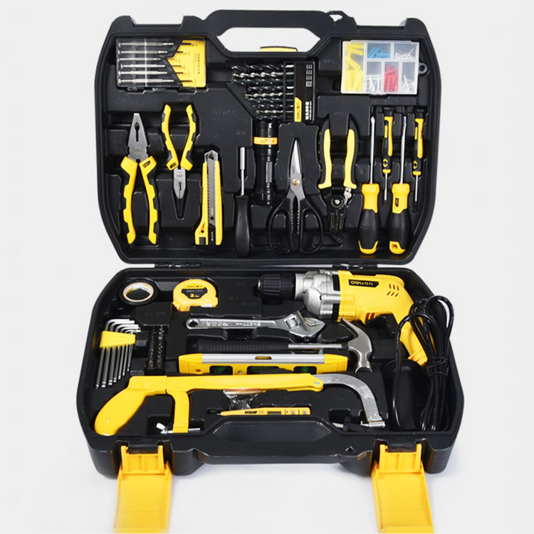 得力多功能家用工具箱五金工具電工手動(dòng)綜合維修組套電鉆套裝