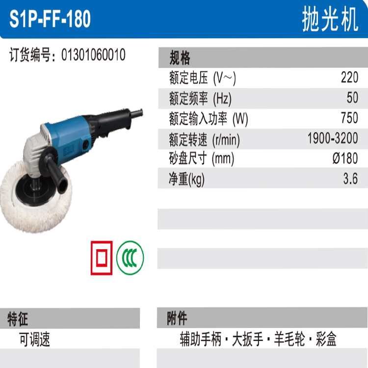 東成 拋光機(jī)750W可調(diào)速羊毛輪打蠟拋磨機(jī)東城東成拋光機(jī)S1P-FF-180