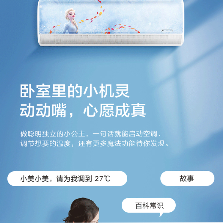 美的艾莎兒童空調(diào)自帶聲控,還可以陪伴孩子學習講故事。