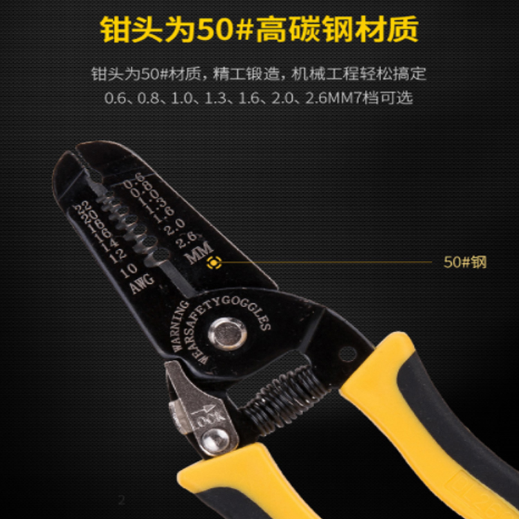 得力(deli) 高碳鋼帶刃口7檔多功能輕便電工剝線鉗電子電工手動工具0.6-2.6mm DL2607