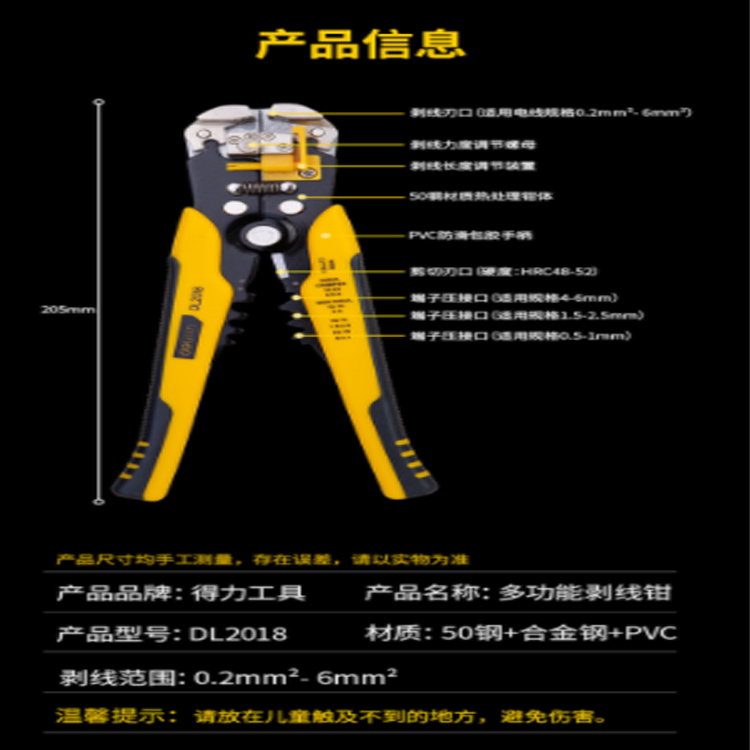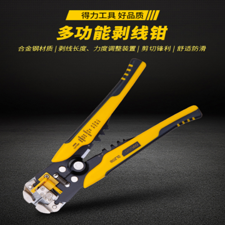 得力(deli) 電工多功能剝線鉗自動拔線鉗端子壓接壓線鉗剪光纖電纜扒皮鉗 DL2018