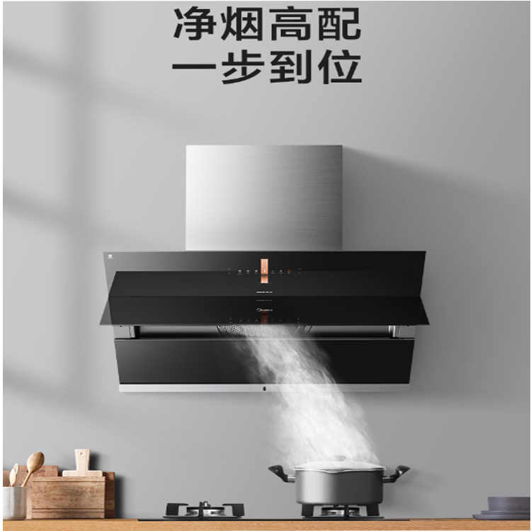 美的智控油煙機(jī)揮手即開,迅猛大吸力,強(qiáng)抽油煙。