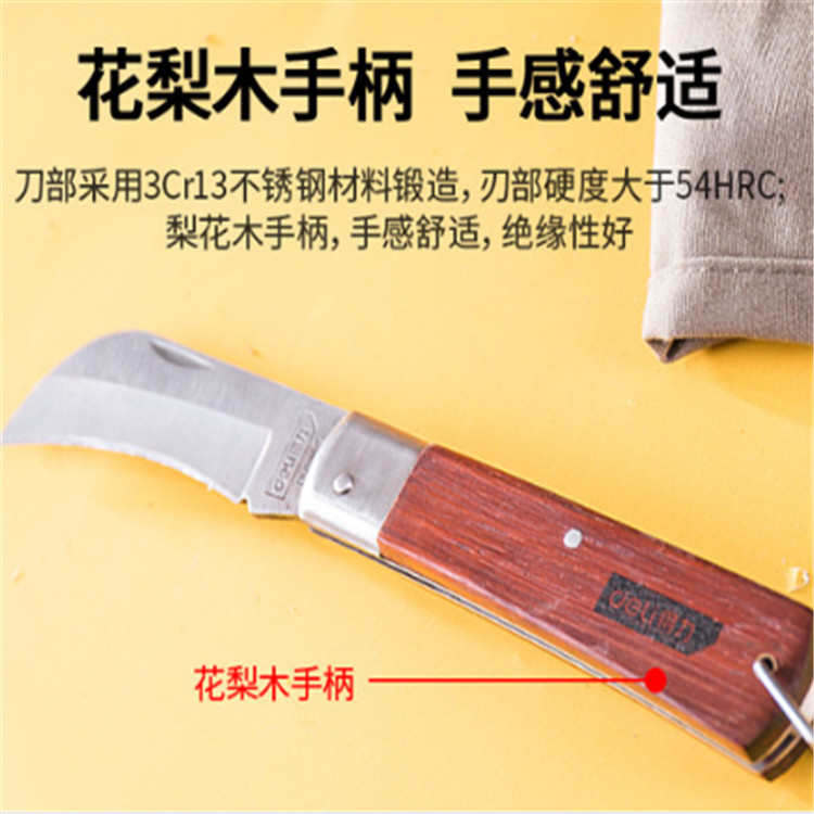 得力折疊電工刀工具刀多功能 剝皮刀電纜電線專用扒皮直刃不銹鋼