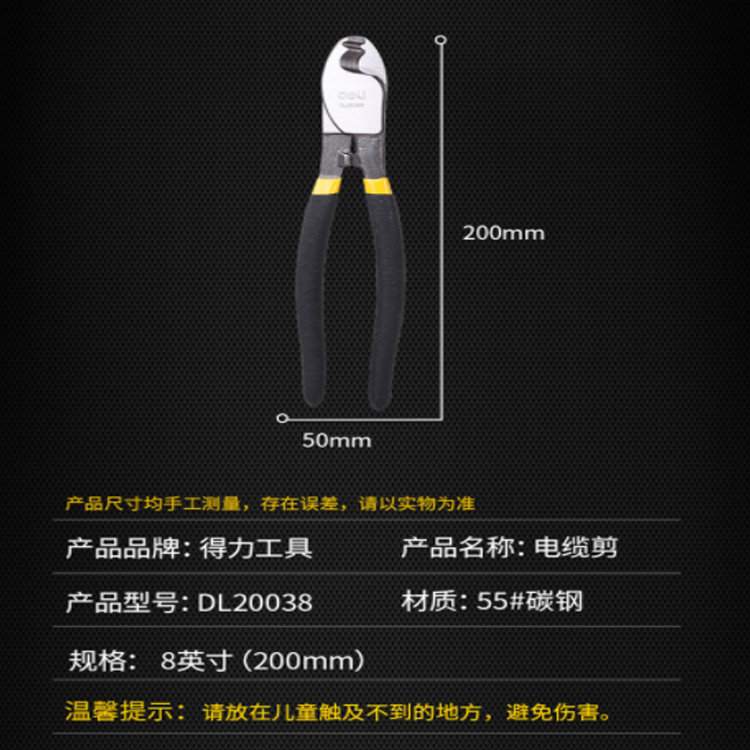 得力(deli) 電纜剪電纜切割鉗斷線剪線纜鉗電工剪刀8英寸 DL20038