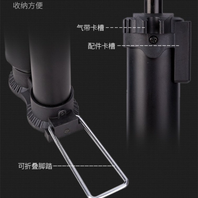打氣筒收納方便,可折疊腳踏,氣帶卡槽,專用固定位收納方便。