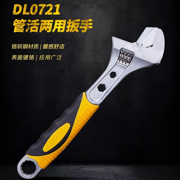 得力活動(dòng)扳手管活兩用扳手管子鉗多用扳手活口塑柄活扳手扳子