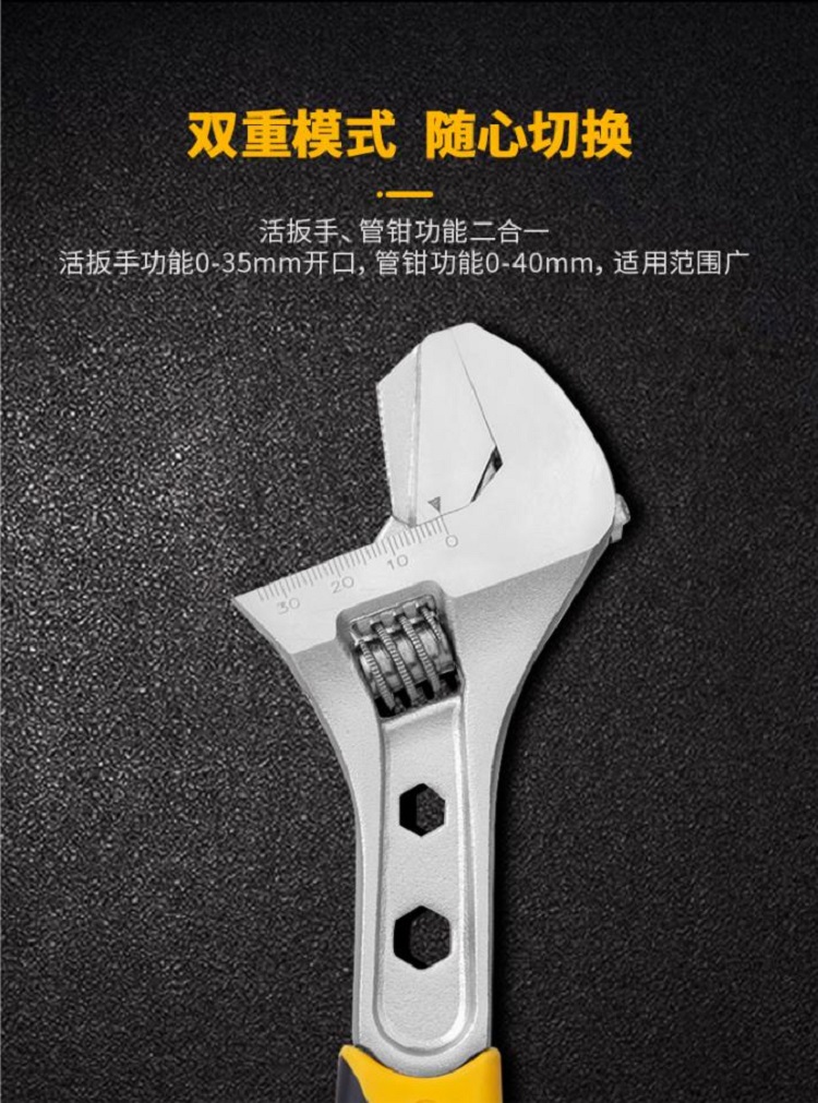 多用扳手將活扳手、管鉗功能二合一,活扳手功能0-35mm開口