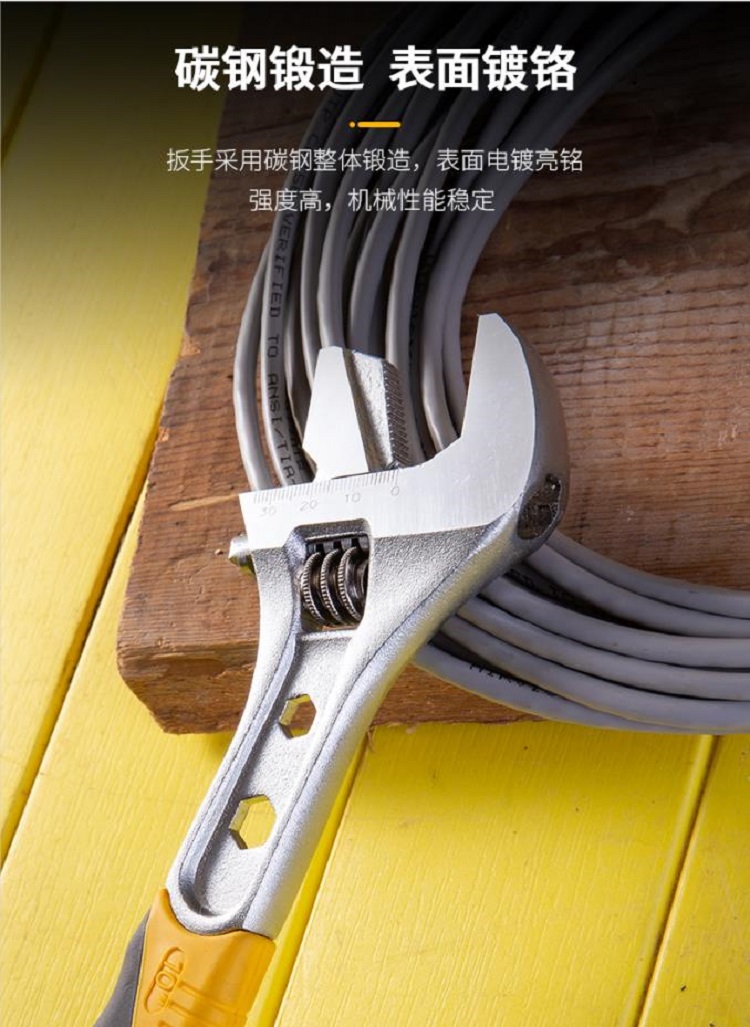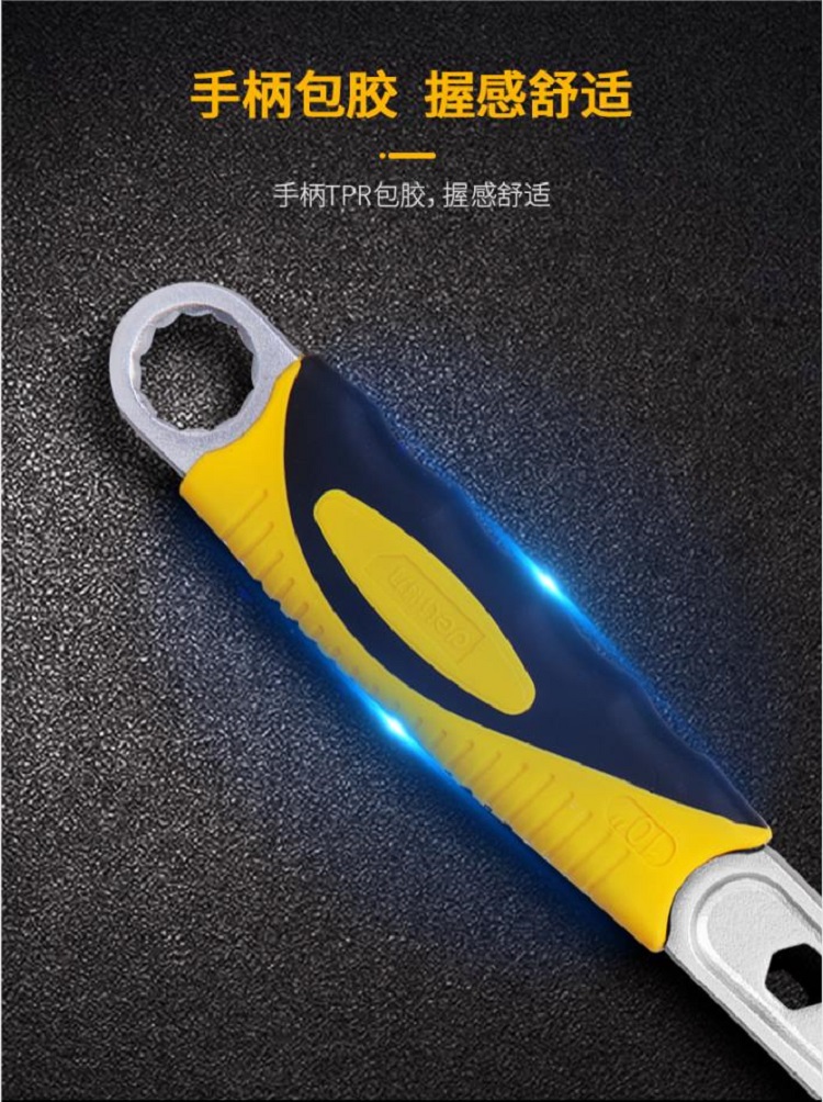 塑柄活扳手的手柄采用TPR包膠,握感舒適