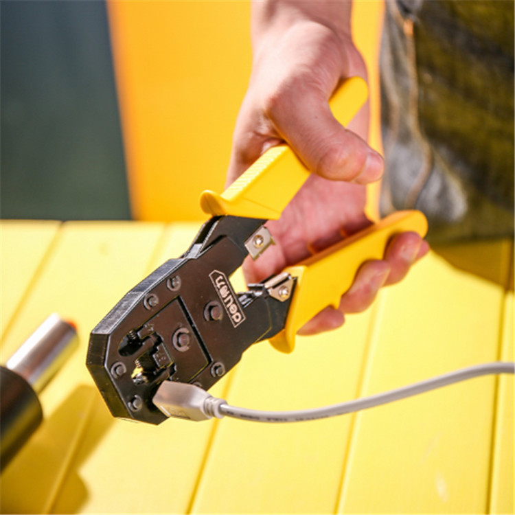 得力網(wǎng)絡(luò)鉗水晶頭接頭鉗注塑手柄,握感舒適。