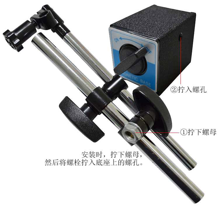 安裝時(shí),擰下螺母,然后將螺栓擰入底座上的螺孔。