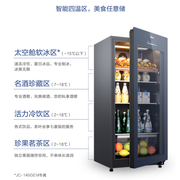 美的家用立式冰柜設(shè)有智能四溫區(qū),美食任意存儲。