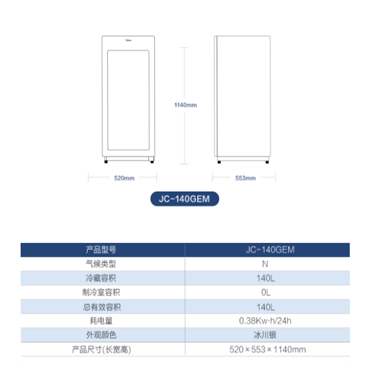 美的(Midea)140升 酒窖級紅酒柜 家用立式葡萄酒冰柜 JC-140GEM
