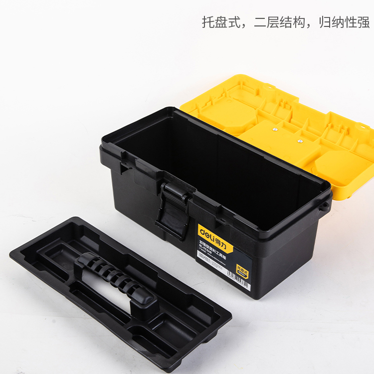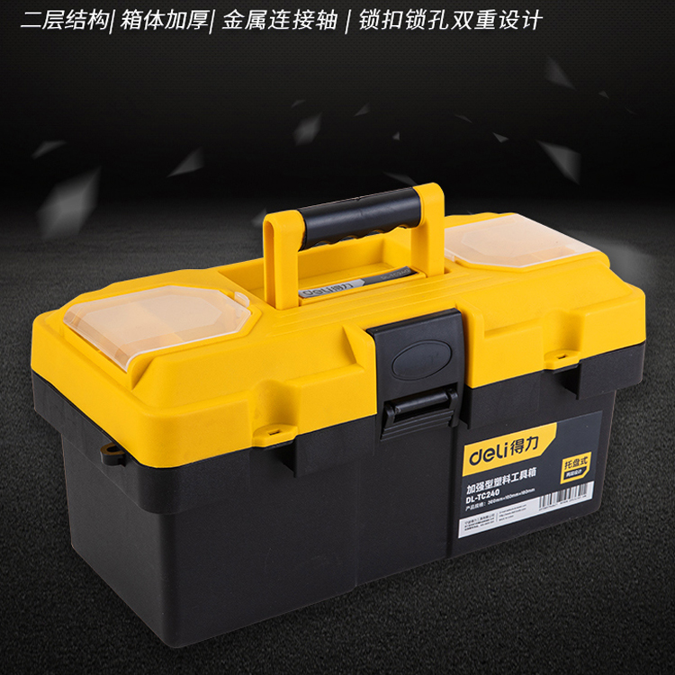 得力工具箱加強(qiáng)型多功能手提式塑料大號(hào)家用維修工具盒工具收納箱