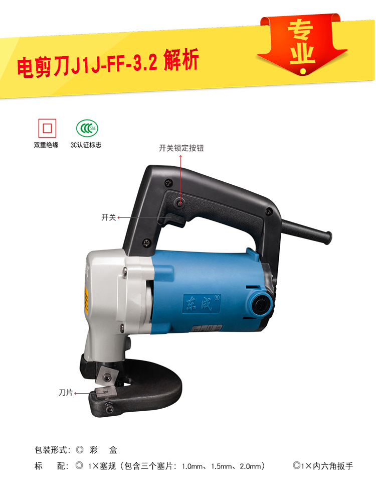 東成 J1J-FF-3.2專業(yè)剪切軟鋼板和不銹鋼電剪刀主要結(jié)構(gòu)展示,各項(xiàng)基本參數(shù)展示
