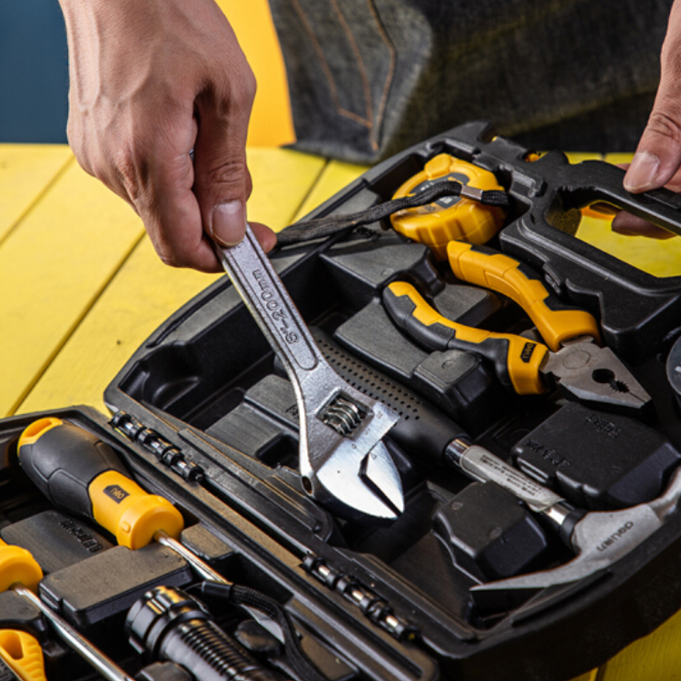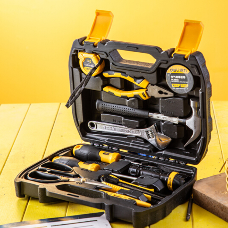 得力(deli) 家用多功能五金工具箱手動(dòng)工具套裝電工維修工具箱家用應(yīng)急包11件
