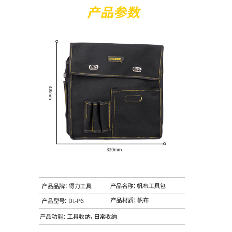 320x110x310mm DL-P6采用帆布制成,多子袋設(shè)計(jì),方便收納各種作業(yè)工具