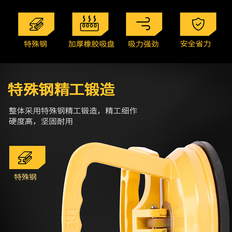 特殊鋼鑄造,加厚橡膠吸盤、吸力強(qiáng)勁、工程塑料壓扣。