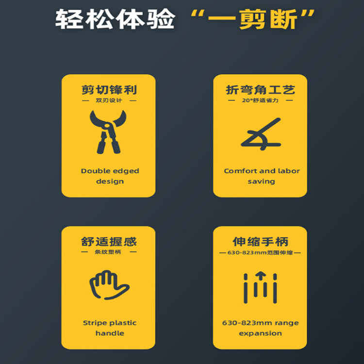 得力(deli) 伸縮式修枝剪20°折彎角使用舒適省力 采用20°折彎角工藝設計