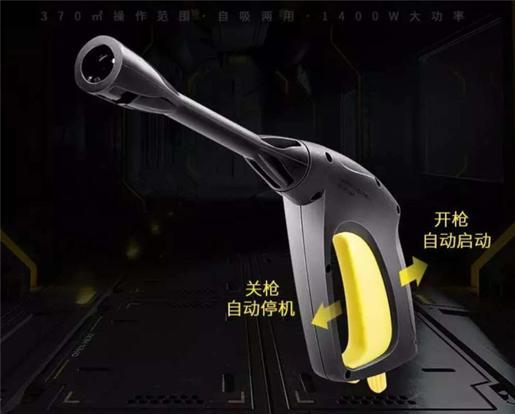 家用洗車機無需頻繁使用開關(guān)按鈕 關(guān)槍機器自動停止工作 重新握緊槍柄電機自動工作 方便快捷
