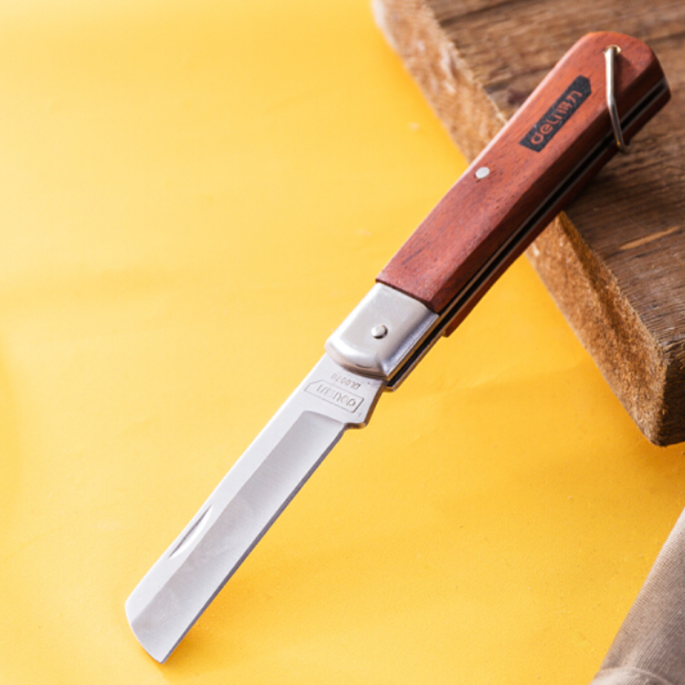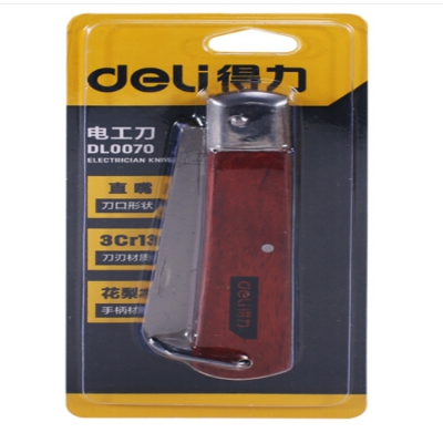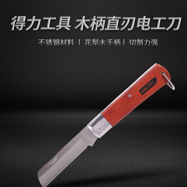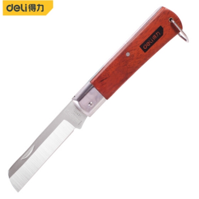 得力(deli) 原木手柄錳鋼直刃電工刀折疊刀電纜刀電線切割工具 DL0070