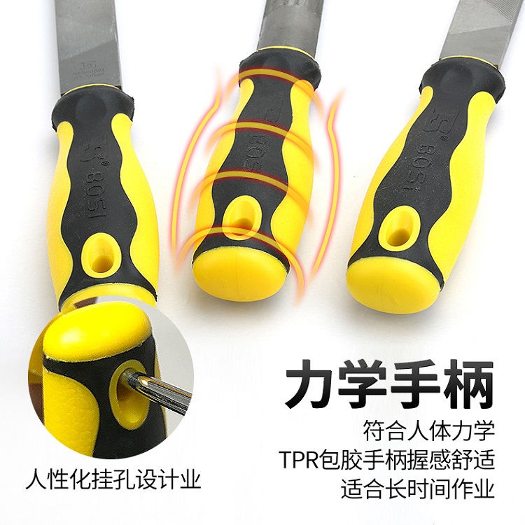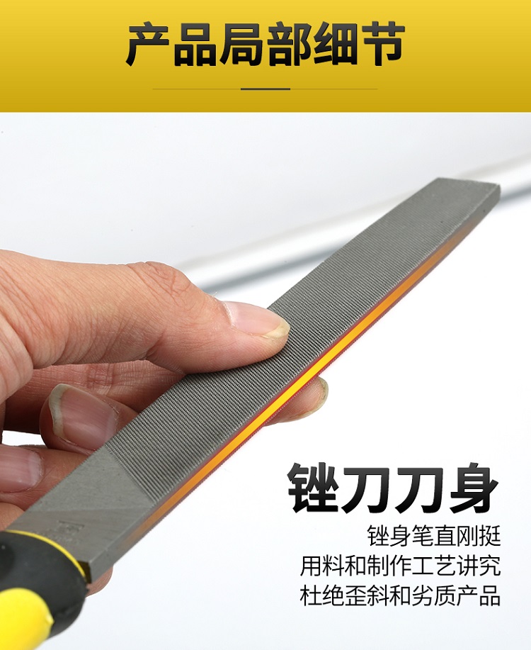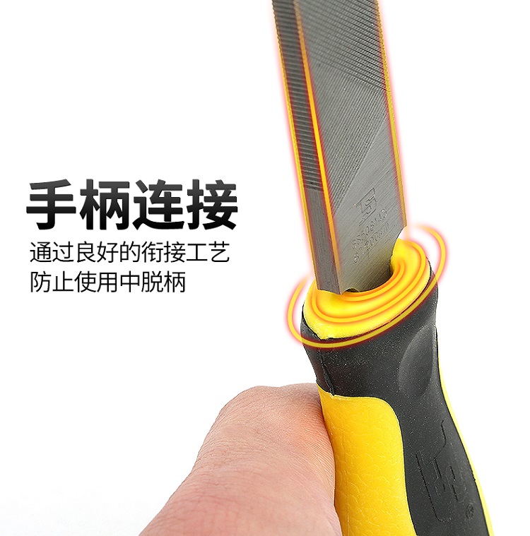 得力銼刀粗齒扁銼手柄連接通過良好的銜接工藝防止使用中脫柄。