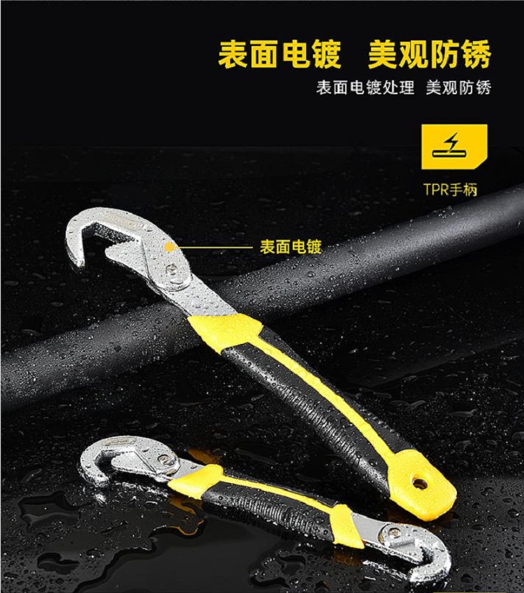 萬能扳手適用于各種型號的螺絲、螺帽、水管、機(jī)動車、空調(diào)等