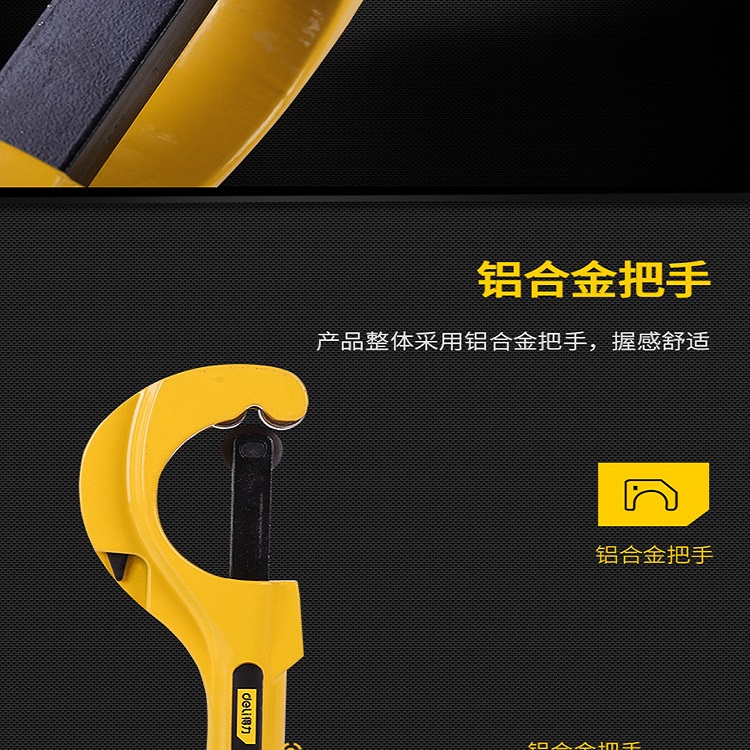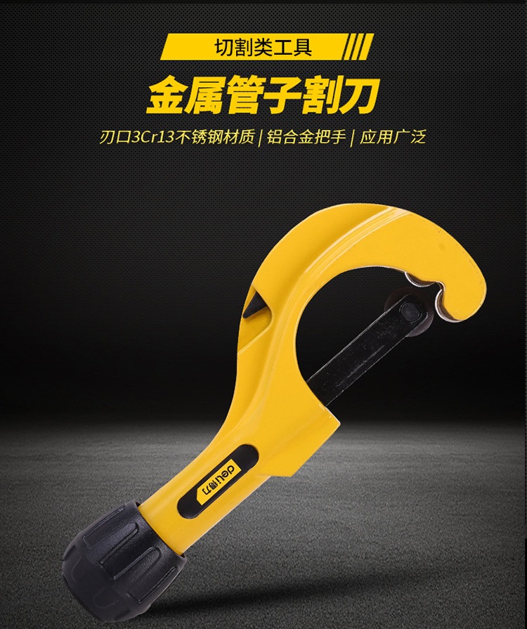 得力工具金屬管子割刀整體采用鋁合金把手,握感舒適。