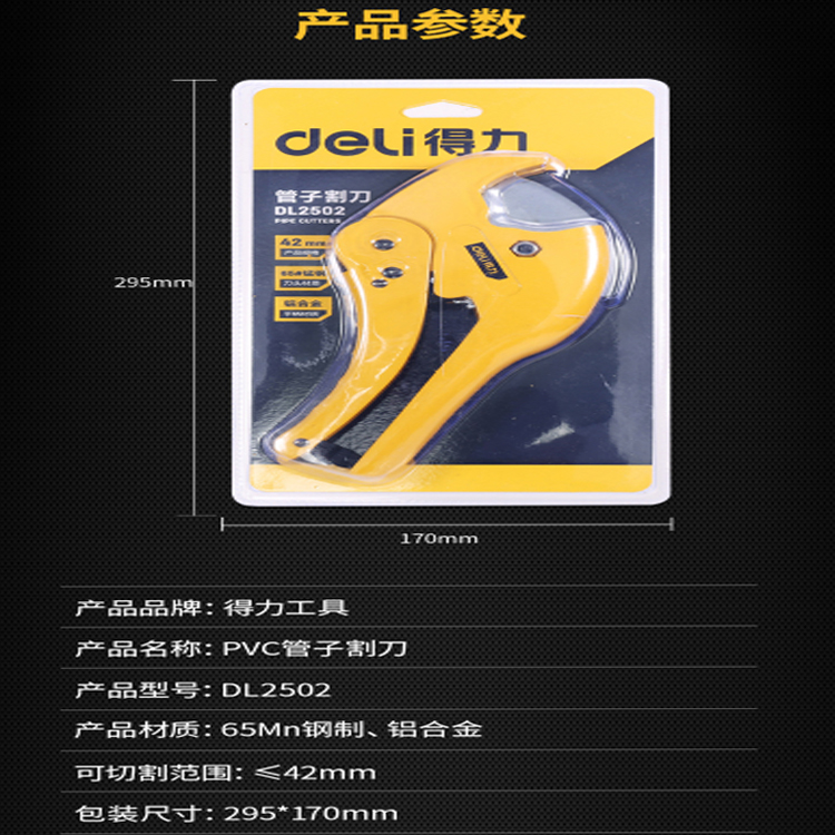 得力(deli) PVC管子割刀鎖扣設計不用的時候手柄閉合,