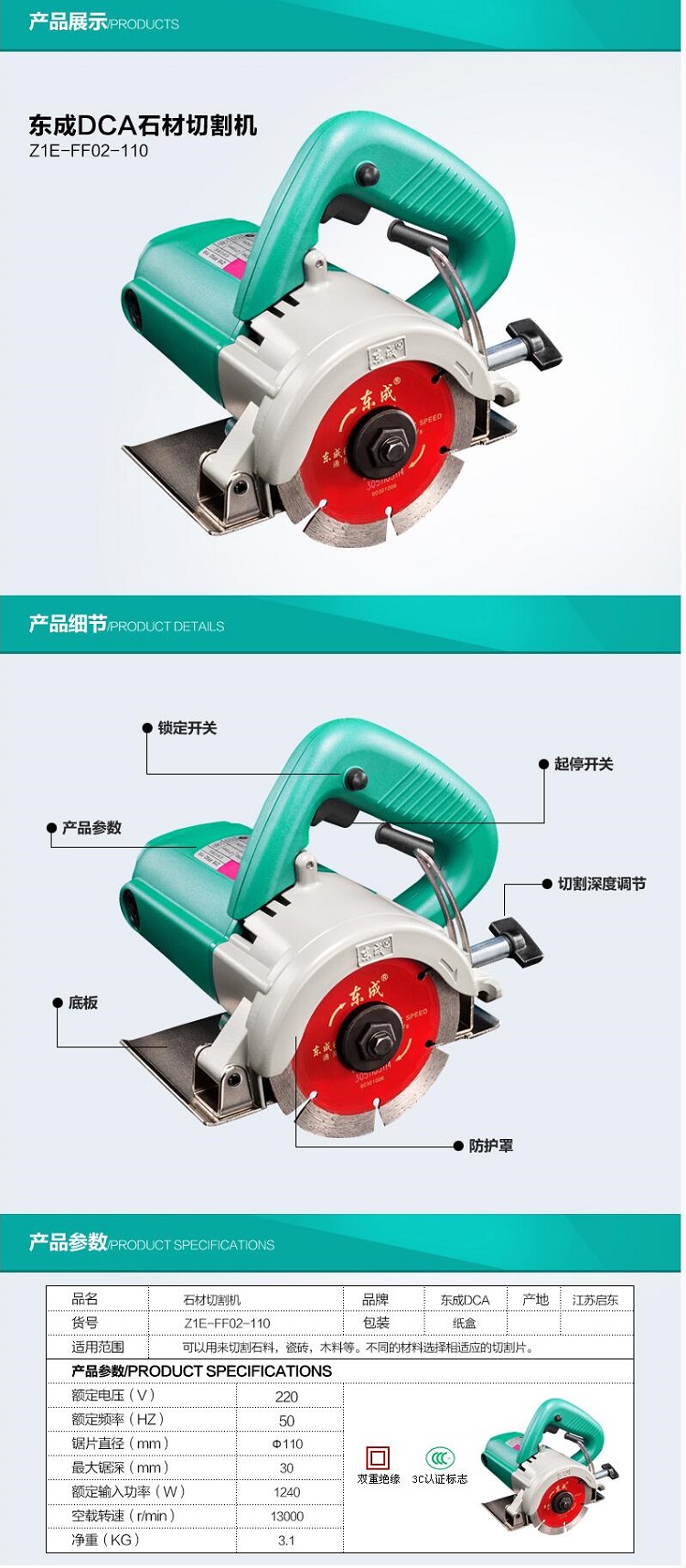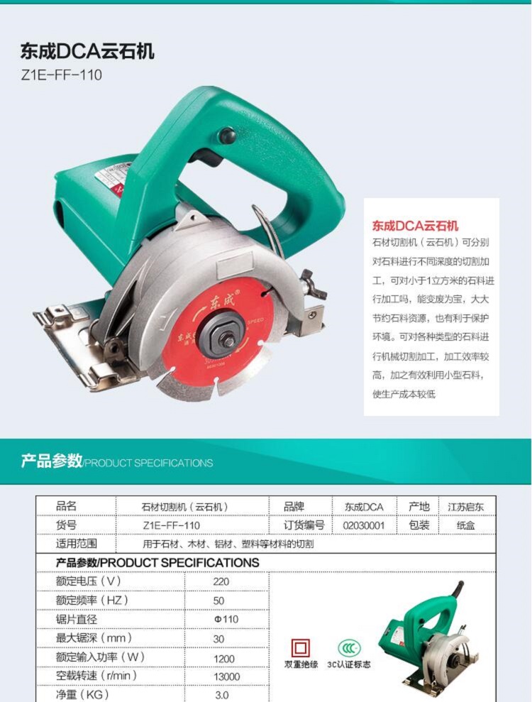 東成DCA石材切割機 FF-110/FF02-110可調(diào)節(jié)云石機大功率電動工具