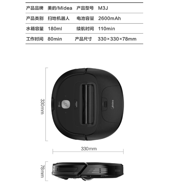 美的 M3J掃地機器人采用日本大吸力電機滾刷,掃的更干凈。