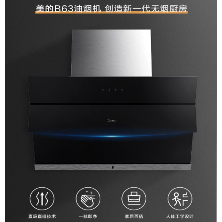 美的抽油煙機(jī)黑晶全屏外觀,一抹即凈,簡(jiǎn)易清潔。