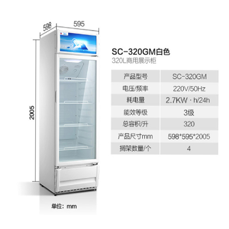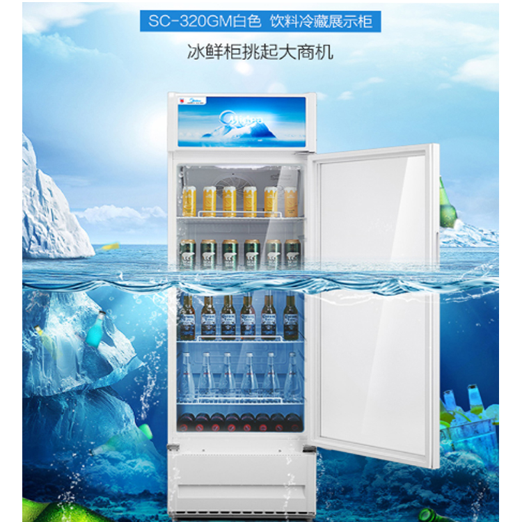 美的(Midea)立式單門家用商用展示柜 冷藏飲料茶葉保鮮柜 啤酒冷飲玻璃門冰柜