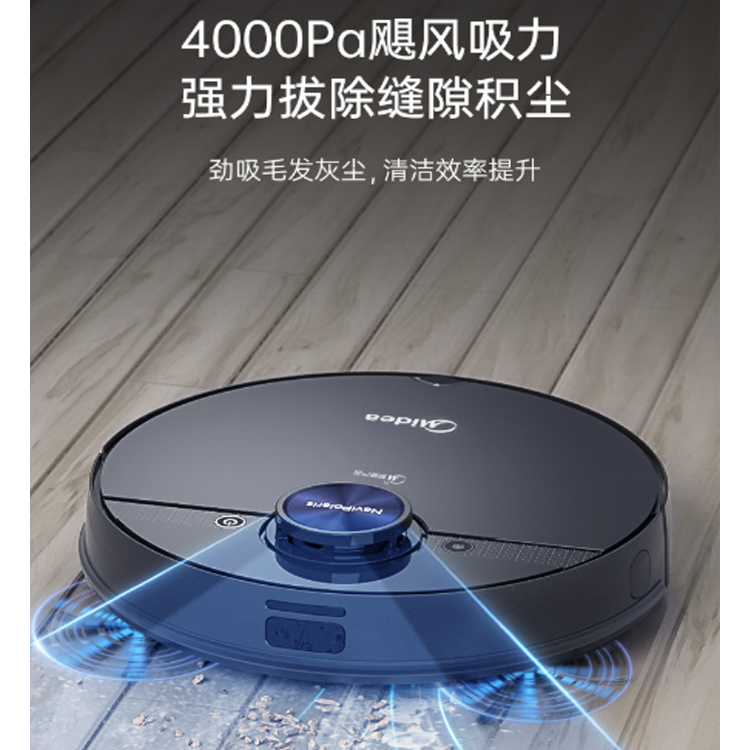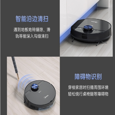美的耀石黑掃地機(jī)器人勁吸毛發(fā)灰塵,清潔效率提升。