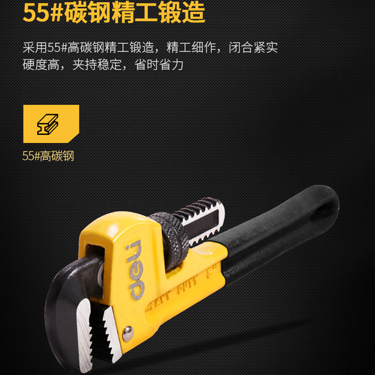 管子鉗精工細(xì)作,閉合緊實(shí),硬度高,夾持穩(wěn)定,省時(shí)省力