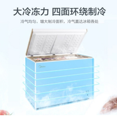 美的臥式冷凍冰柜制冷接觸面積更大,提供強(qiáng)勁制冷。