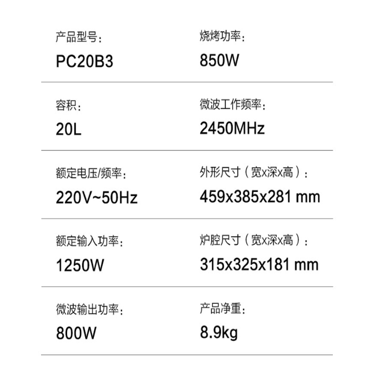 美的(Midea)家用多功能微波爐20升 微烤一體機 智能解凍 大平板均勻加熱