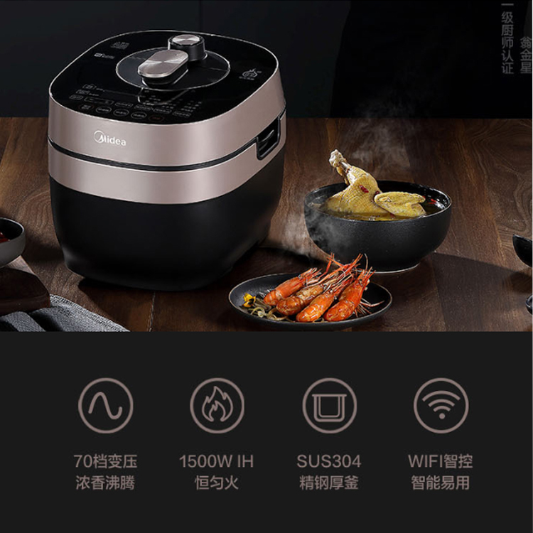 美的(Midea)電壓力鍋5升鋼膽 IH變壓濃香電高壓鍋 WIFI智能觸控家用電壓力煲