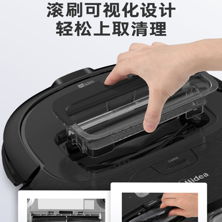美的M3J掃地機(jī)器人滾刷可視化設(shè)計,輕松清理毛發(fā)垃圾。
