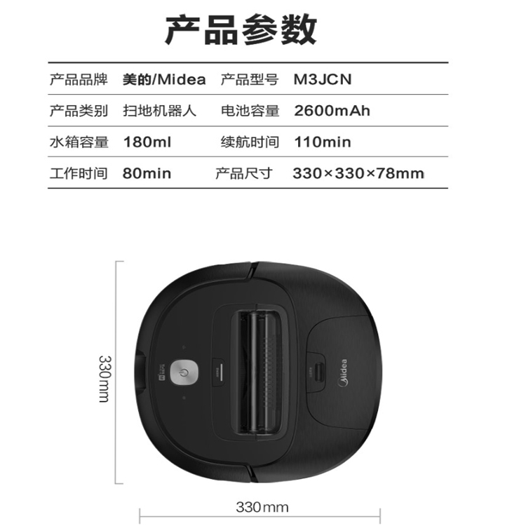 美的(Midea) M3J掃地機(jī)器人掃拖一體 雙重定位大吸力 智能規(guī)劃路線 拖地掃地機(jī)