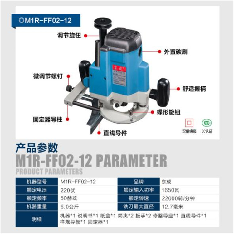 東成電木銑1650W大功率、高強(qiáng)度的木工雕刻機(jī)