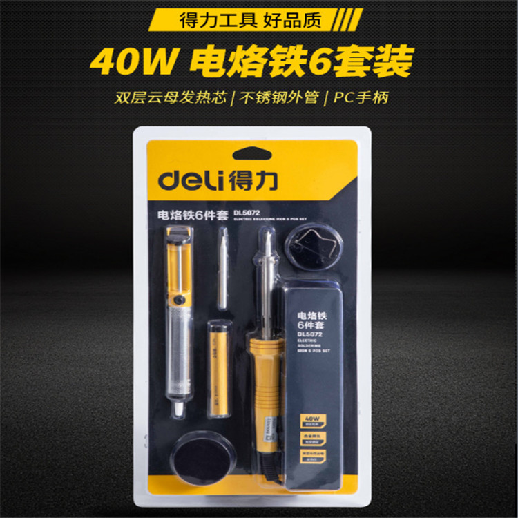 得力電烙鐵套裝雙層天然云母發(fā)熱芯,快速傳熱,發(fā)熱穩(wěn)定,可簡易更換設計發(fā)熱芯設計,使用方便。