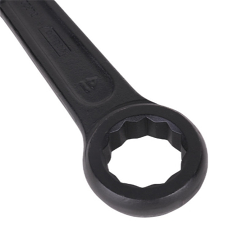 得力敲擊梅花扳手采用優(yōu)質(zhì)高碳鋼鍛壓制造,表面磷化發(fā)黑處理。