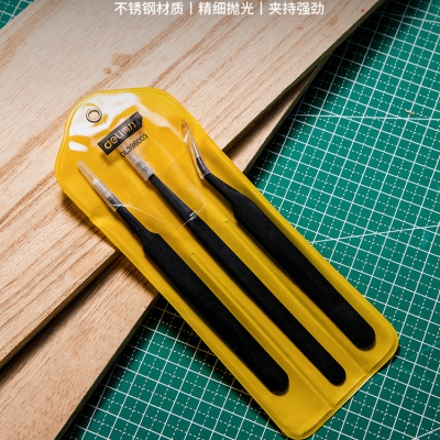 得力工具不銹鋼鑷子彎頭細尖頭防靜電小鑷夾小夾子維修工具套裝