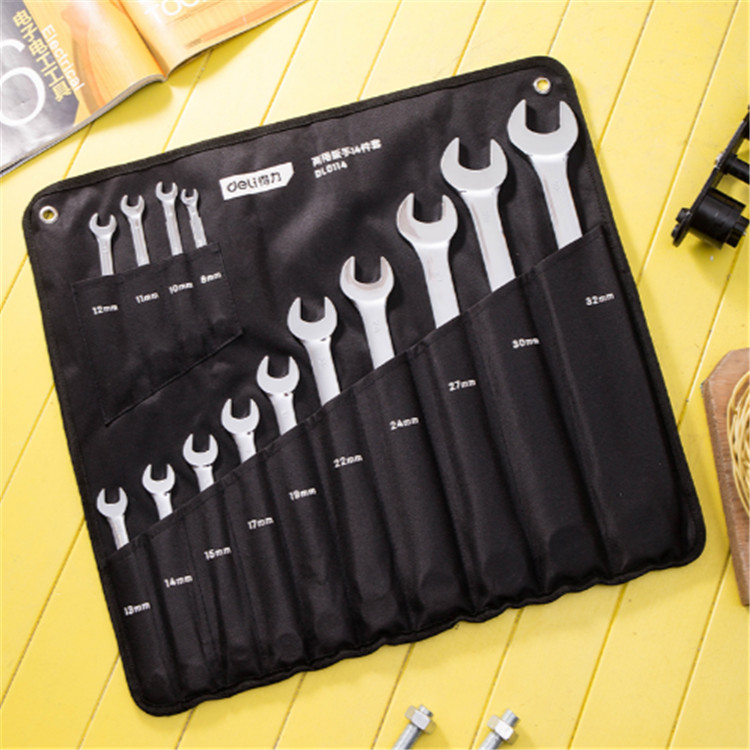 得力兩用扳手套裝十四件套,更加方便應(yīng)對(duì)各種場(chǎng)合。